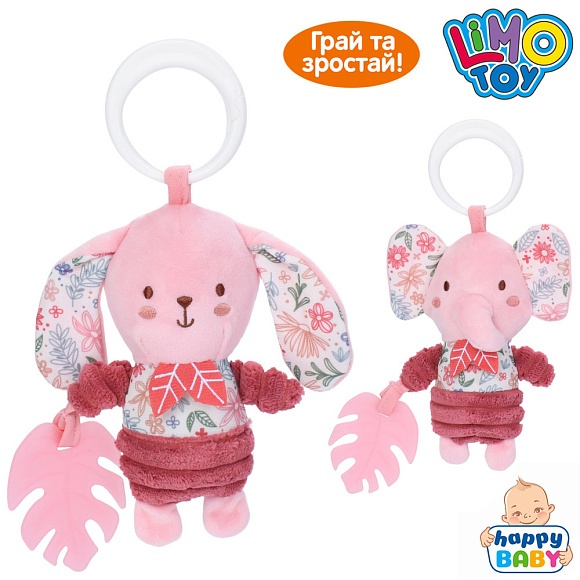 Підвіска м'яка HB 0111 AB 21см,тварина 15см,плюш,прорізувач, звук, шуршить, 2 види, пакет