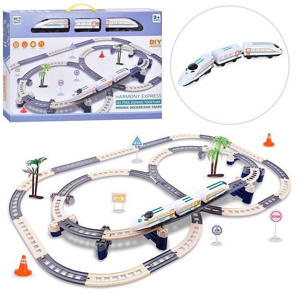 Залізниця 1628-2 42 дет., локомотив, 2 вагони, знаки, дерева, бат., кор., 58-39-6,5 см.