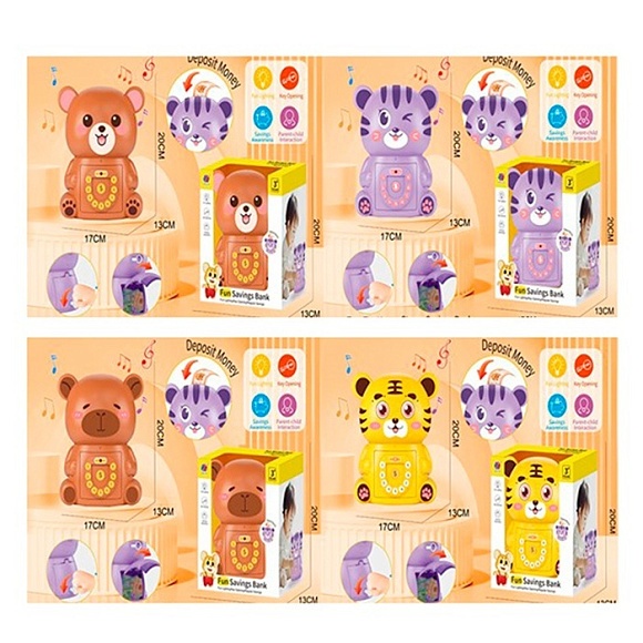 Опис Скарбничка mk 5775 тварина, 19,5см, музика, світло, гроші, 4 види, на бат-ці, в кор-ці, 17-20-13см