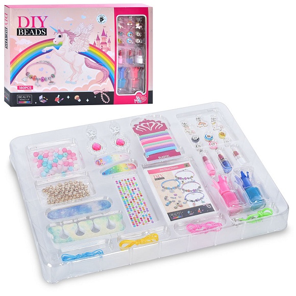 Набір для творчості LD6031 намистини, нитки, заколки, лак, помада,резинки,сережки,мікс кольорів,кор.