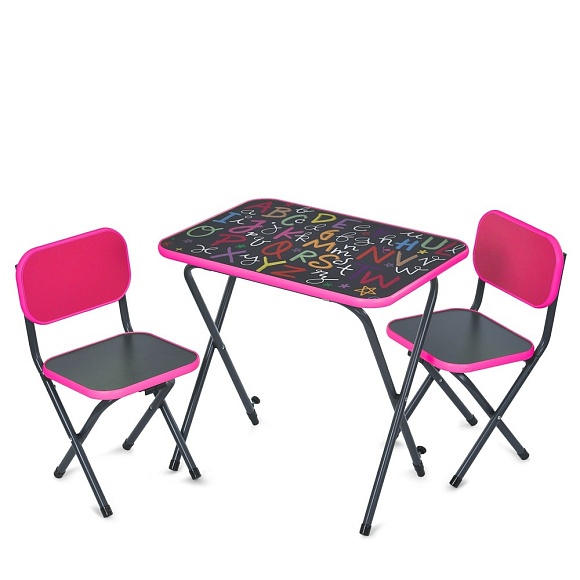 Столик Alphabet малиновий з 2 стільчиками, складний, 59,5-44 см., англ. алфавіт.
