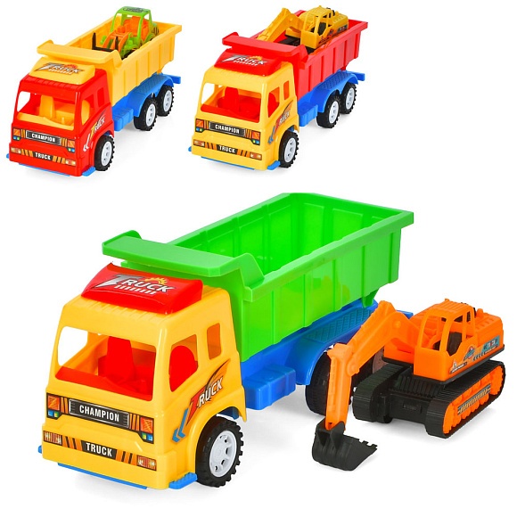 Опис Набір з транспортом 2366-7-8E самоскид26см(інерц)будтехніка, рух.деталі,мікс.у пакеті, 26-12-9см