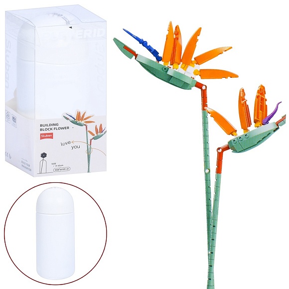 Опис Конструктор SLUBAN M38-B1101-01 квіти, стрелітція королівська, колба, кор.(бліст.), 9,5-22-9,5 см.