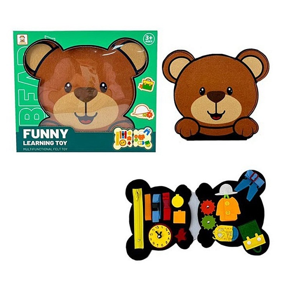 Опис Гра Y514-3 бізікнижка, ведмедик, шестерні, гардероб, шнурівка, застібка-блискавка,кор.,30-25,5-3,5см