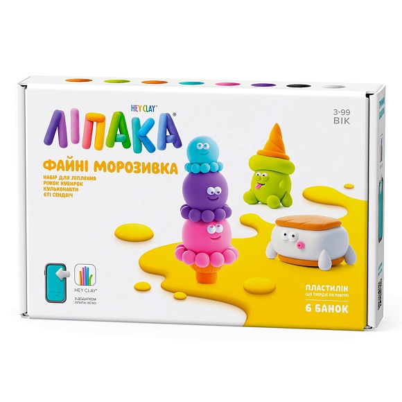 Опис Набір пластиліну, що твердіє, ЛІПАКА – ФАЙНІ МОРОЗИВКА: КУЛЬКОНАВТИ, ЄТІ СЕНДВІЧ, РІЖОК КУВИРОК