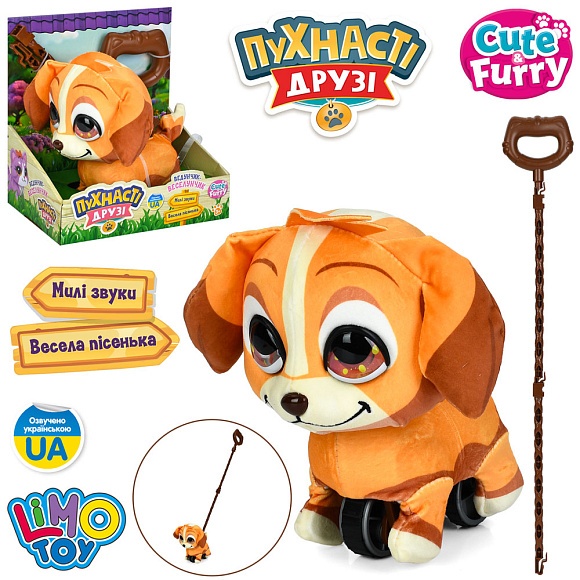 Опис Тварина m 6244 i ua собака,19см,каталка на палці(65см), муз.(укр), пісня, звук, плюш,на бат., в кор.