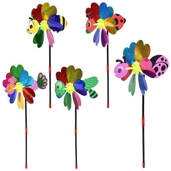 Вітрячок MR 1353 квітка, діам. 20,5 см., паличка, 5 видів (комахи, павич), кул., 24-22-3 см.