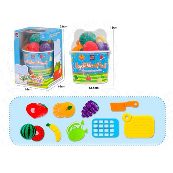 Опис Продукти 6885 на липучці, фрукти, ягоди, ніж, дошка, відро, кор,, 14-21-14см