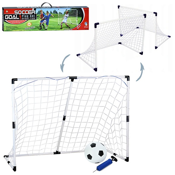 Футбольні ворота MR 1383 2в1, сітки 3 шт., м'яч, насос, кор., 89,5-21-6,5 см.