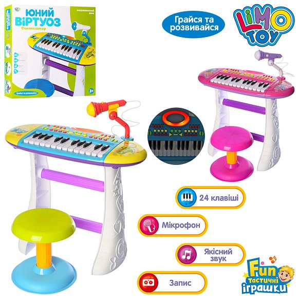Синтезатор BB383BD стільчик, мікрофібра, регул. гучність, 2 види, муз., світло, бат.,кор.,49-48-11см