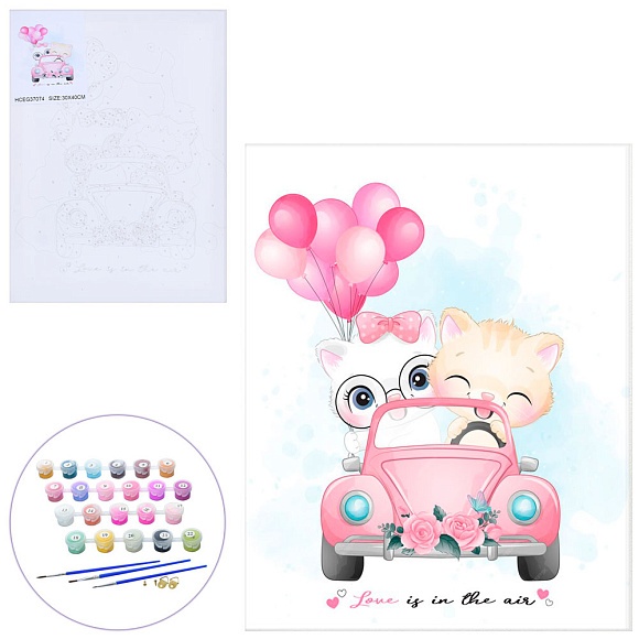 Опис Набір для творчості МК 5339 картина за номерами, 30-40см., Кошенята на авто, кул., 30-40-2 см.