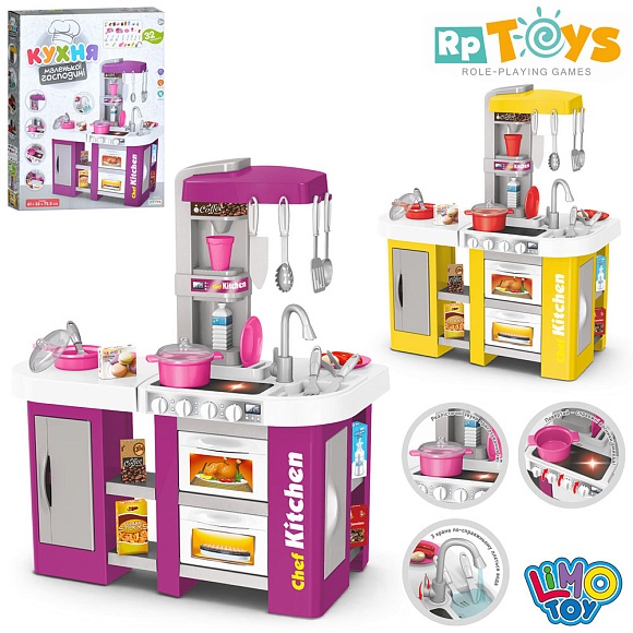 Кухня 922-47-47A 61-33-в72,5см,плита,звук,світло,духовка,мийка-ллється вода,32пр.,2кольори, бат.кор.