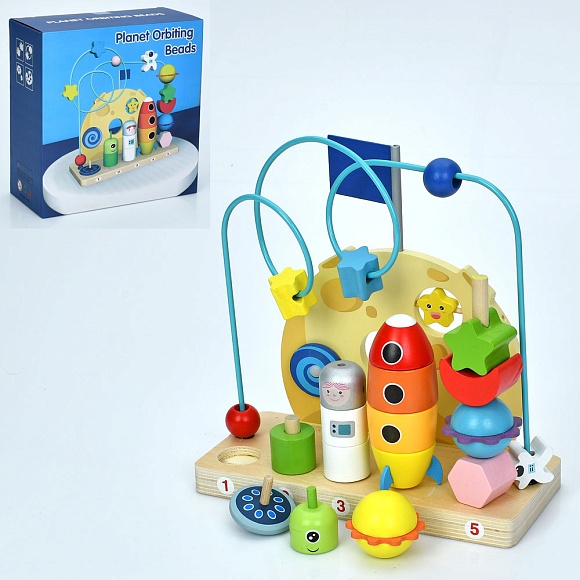 Дерев'яна іграшка Лабіринт MD 1976 на дроті, пірамідки (фігурки, ракета, фігури), кор., 25-24-11 см.
