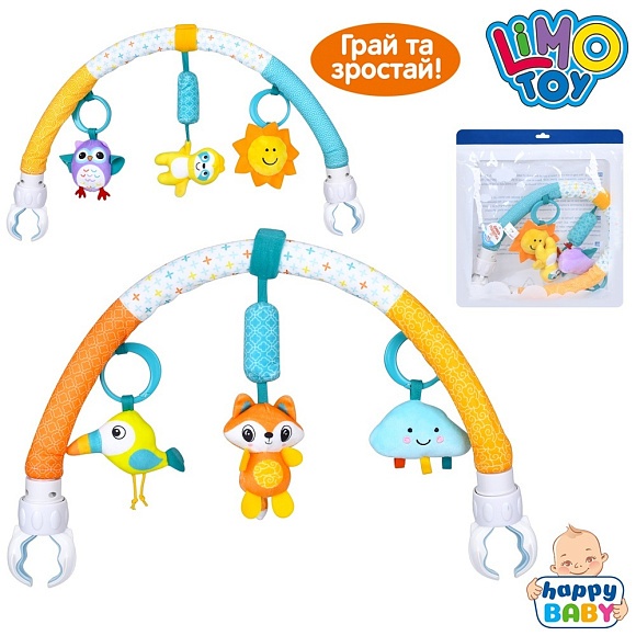 Опис Підвіска HB 0071 AB дуга на коляску, підвіски, пискавка, дзеркало, плюш, 2 види,муз.,кул.,38-37-6см.
