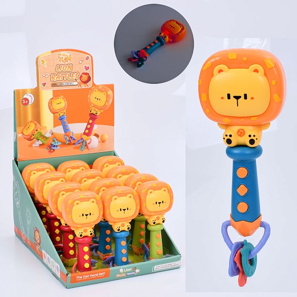 Брязкальце M609 лев,звуки тварин,прорізувач,муз.(англ.),світло,бат.,12шт.(3 кольори)в диспл.,27-35,5