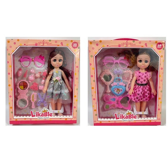 Опис Лялька 2026 d4-5 окуляри, ножиці, гребінець, аксесуари, 2 види, муз., бат. (табл.), кор., 29-35-8 см