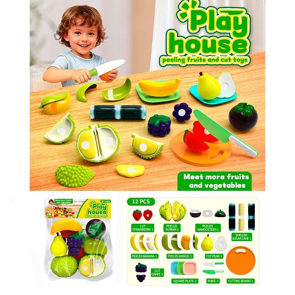 Опис Продукти 66-22K на липучці, фрукти, дошка, ніж, посуд, у пакеті, 23,5-26-5,5см