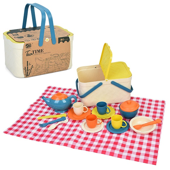 Набір посуду SK313A набір для пікніка,скатертина, 4 персони,тарілки,чашки,чайник,корз.24-16,5-13,5см