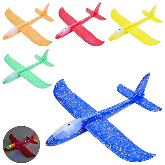 Літак FG231009003M пінопласт., мікс кольорів, світло (3 режими), бат. (табл.), кул., 12,5-47-4,5 см.