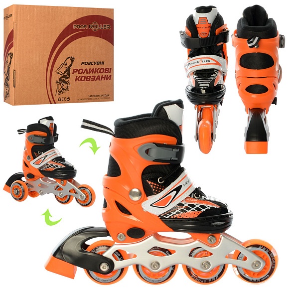 Опис Ролики a 4140-xs-or(27-30) розсув., шнур.+бакля, ал.рама, кол.ПУ64мм,1світло,комбо,помаранчевий,кор.
