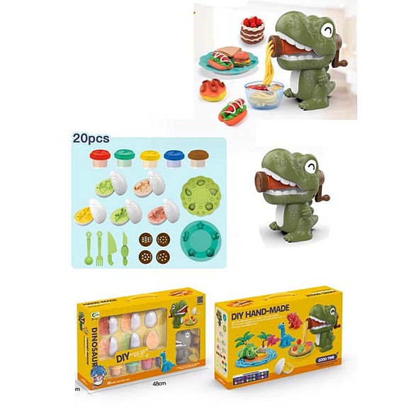 Опис Пластилін MK 5452 5 кольорів(баночка з кришкою),динозавр/м'ясорубка/апарат-прес,насадки,формочки,кор