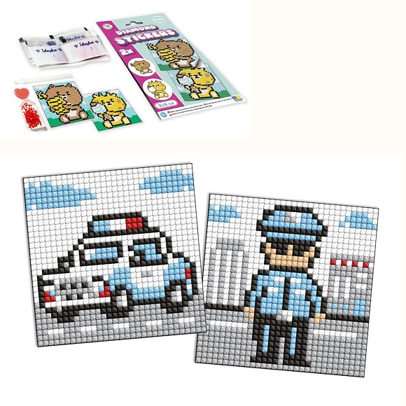 Опис Набір з алмазною мозаїкою на самоклеючій основі для дітей "Професії.Поліцейський" 9х9см