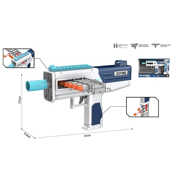 Опис Автомат wy2106b м'які кулі 10 шт. (5 шт. присоски), кор., 37,5-22,5-6,5 см.
