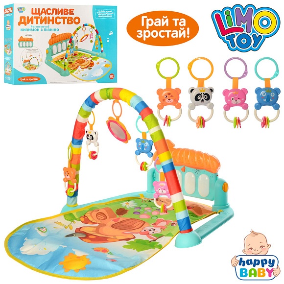 Опис Килимок для немовляти М 5469 дуга, підвіски, піаніно, муз., світло, бат., кор., 45,5-32-8 см.