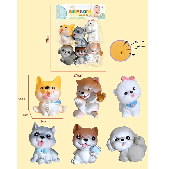 Опис Іграшка для купання yf002-7 собака, набір 6 шт., кул., 21-23-4 см.