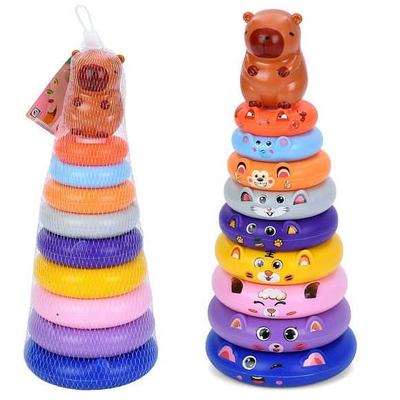 Пірамідка HJ-0619 капібара, кільця 8шт (з вушками), наліпки, сітка, 36-13-13 см.