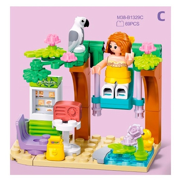 Опис Конструктор SLUBAN M38-B1329C рожева серія, гойдалка, фігурка, 69 дет., кор., 12-12-6 см.