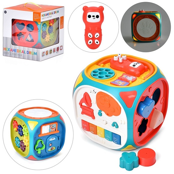 Опис Гра N6108 куб,розвив.,шестерні,піаніно,барабан,сортер,рух.дет.,муз.(англ.),світло,бат.,кор.,26-30-26