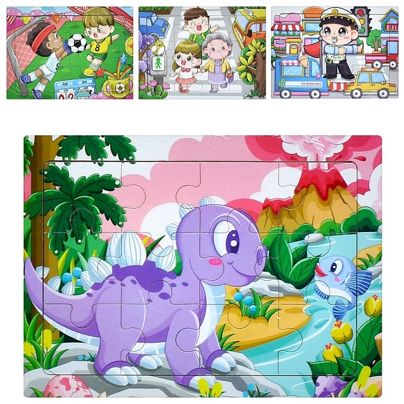 Опис Дерев'яна іграшка Пазли MD 1354 12дет, мікс видів, кул., 15-11-0,5 см.