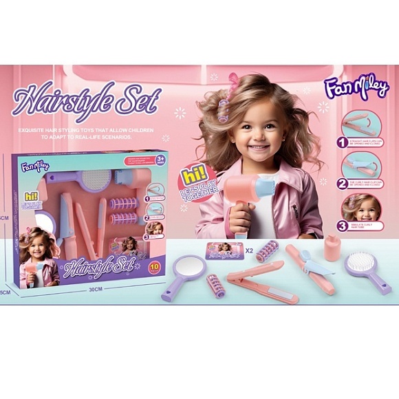 Опис Набір аксесуарів f2360 набір перукаря, фен, плойка 2шт,гребін.,дзерк.,бігуді,10пр,в кор.,30-25-5,5см