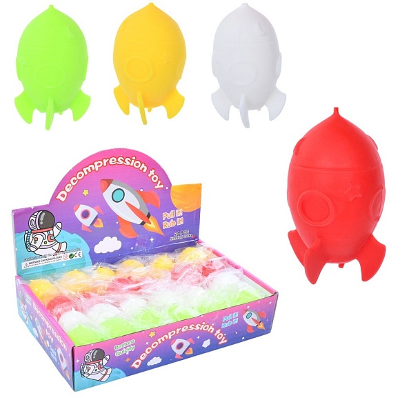 Опис Іграшка MS 4130 антистрес, ракета, борошно, 4 кольори, кул., 24 шт. в диспл., 28,5-6-18 см.