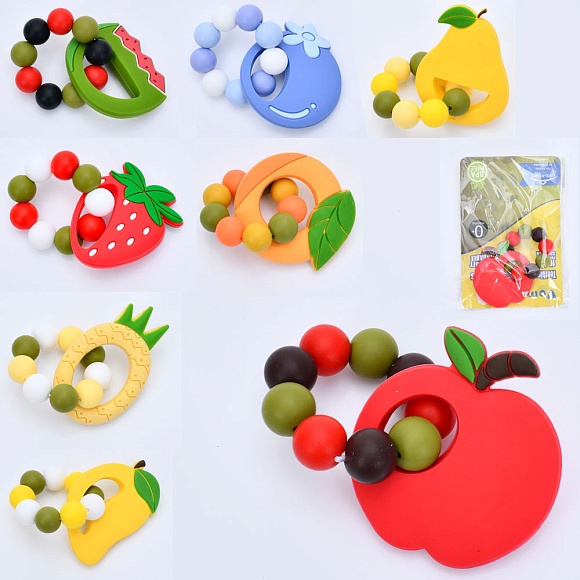 Опис Брязкальце TD202369 прорізувач, 8 видів (фрукти, ягоди), кул., 10-15-36 см.
