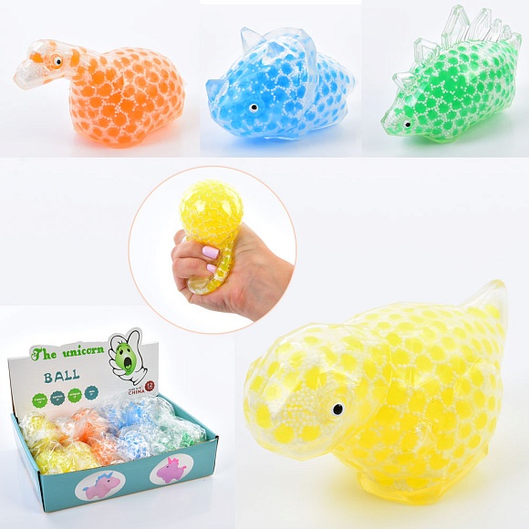 Опис Іграшка MS 4018 динозавр, антистрес, орбіз, кул., 4 види, 12 шт. в диспл., 27-20-6,5 см.