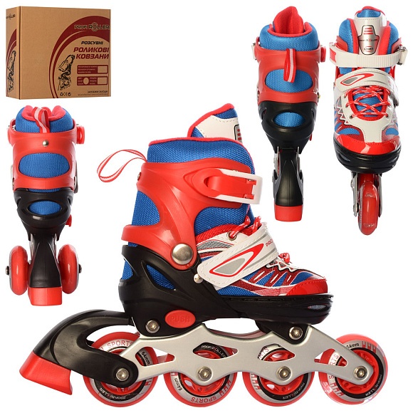 Опис Ролики A 4122-XS-R(27-30) розсув,шнур+бакля,ал.рама,колПУ64мм,1світ,червон.,комбо,кор.35-27,5-10см.
