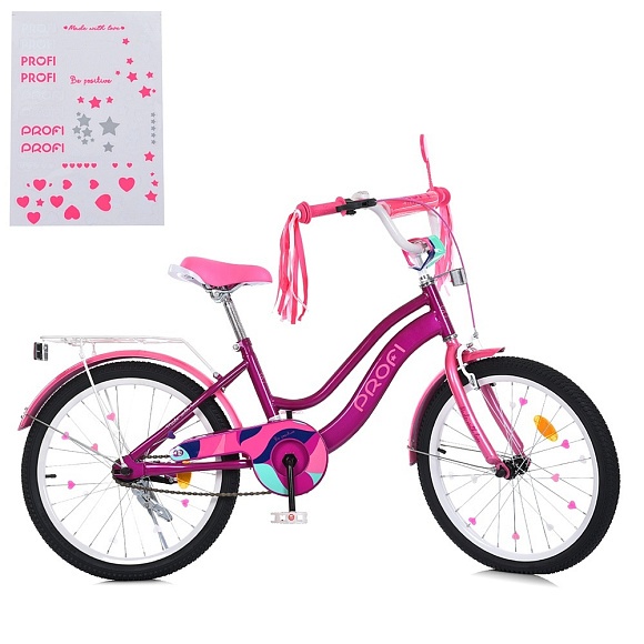 Опис Велосипед дитячий prof1 20д. mb 20052-1 wave, skd75, дзвінок, ліхтар, багажник, підніжка, фіолетовий
