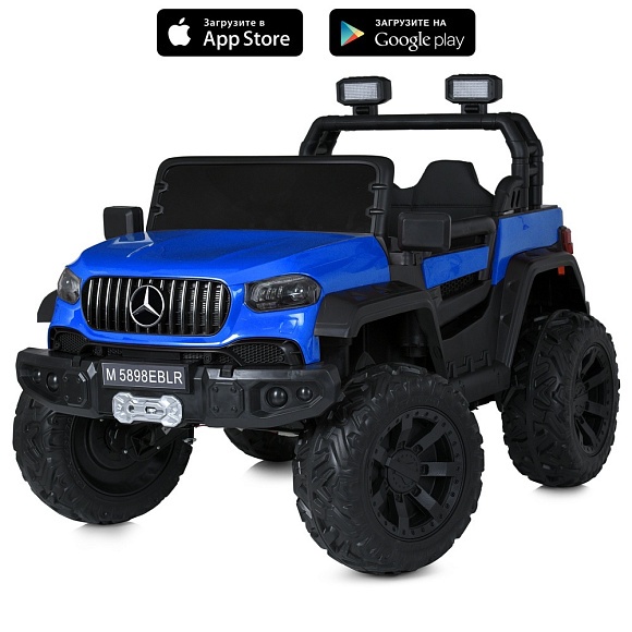 Опис Джип M 5898EBLR-4 радіокер.2,4G, 1*12V12AH, 4*25W, MP3, USB,TF,BLUETOOTH,EVA,шкіра,муз.,світло,синій