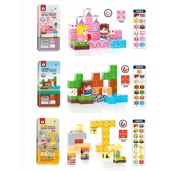 Конструктор HD195A-7A-8A магнітний, куб.38дет,3види.кор.(метал), 9,5-21-4см