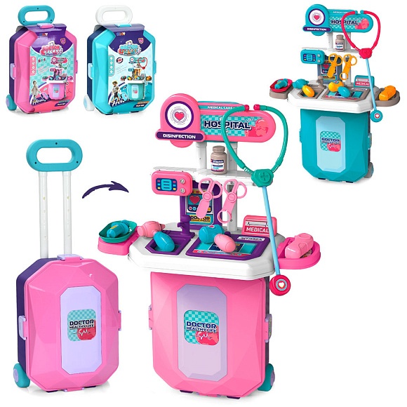 Опис Набір лікаря D57993-A стіл, стетоскоп, мед.інстр., чемодан, 2види, в карт.обгортці, 26-40-14см