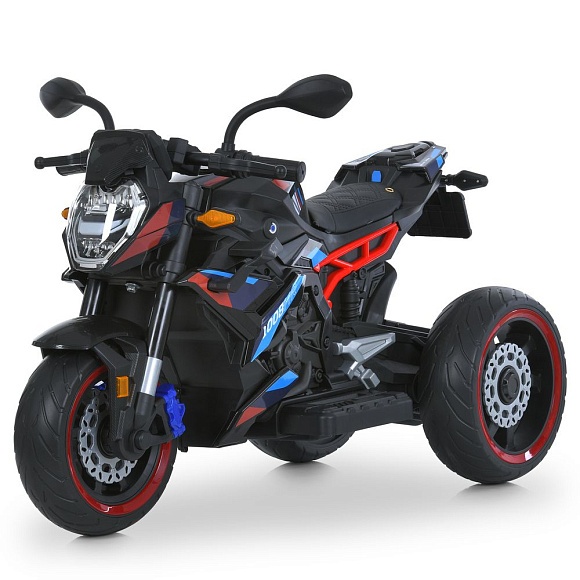 Опис Мотоцикл m 6142el-2 2 мотори 25w, 1 акум.12v7ah, mp3, tf, usb, eva, шкіра, муз., світло, чорний.