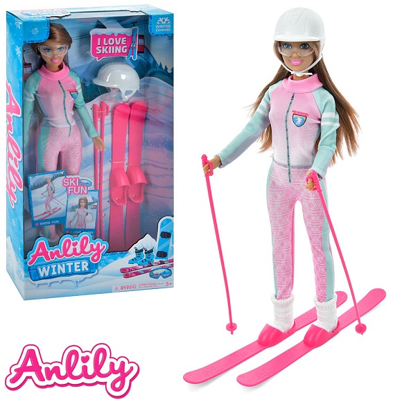 Лялька 98005 лижниця, шарнірна, шолом, кор., 17-32-5 см.