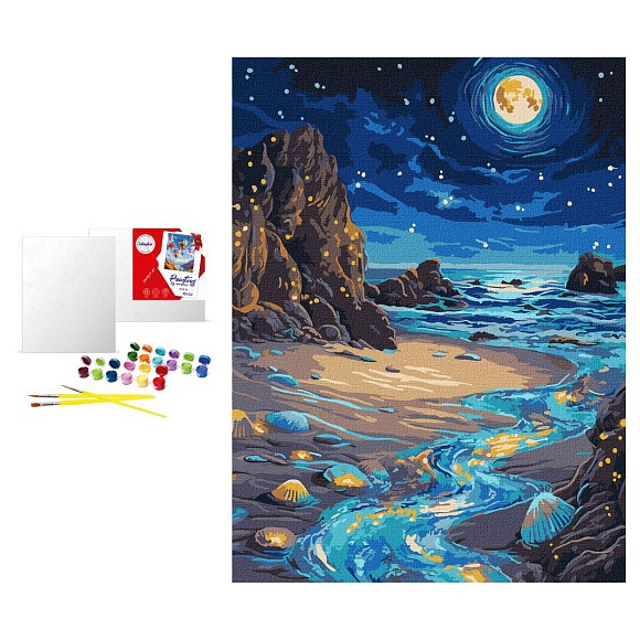 Опис Набір для розпису по номерах "Сяючий берег з фарбами металiк extra" 30х40см