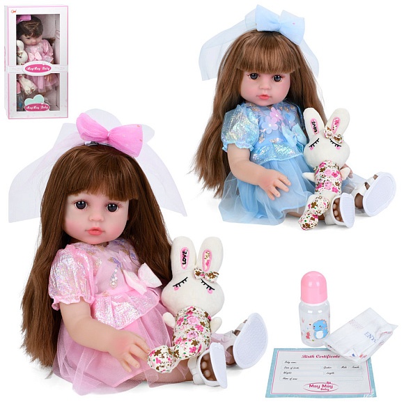 Опис Лялька 209-89 зайчик, пляшечка, підгузок, 2 види, кор., 26,5-51,5-13 см.