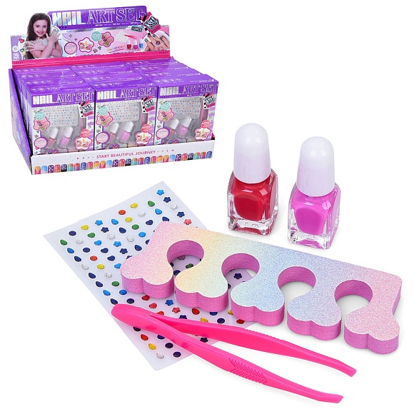 Косметика KSY968-1 (144шт) набір для манікюру, лак 3шт, розділювач для пальців, пінцет, наліпки, в кор-ці, шт в дисплеї, 36-17-15см