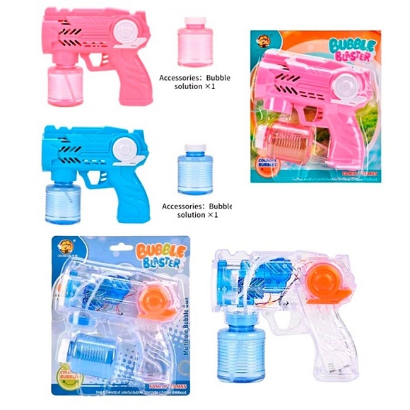 Опис Мильні бульбашки MY281-1-284-1 пістолет,світло,запаска.2 кольори,бат,бліст.18,5-22-5,5см