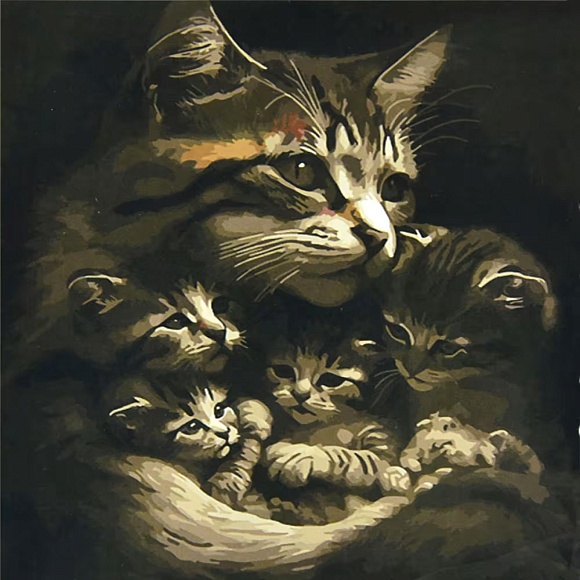 Опис Набір для розпису по номерах Кішка з котенятами Strateg розміром 50х50 см (AA006)