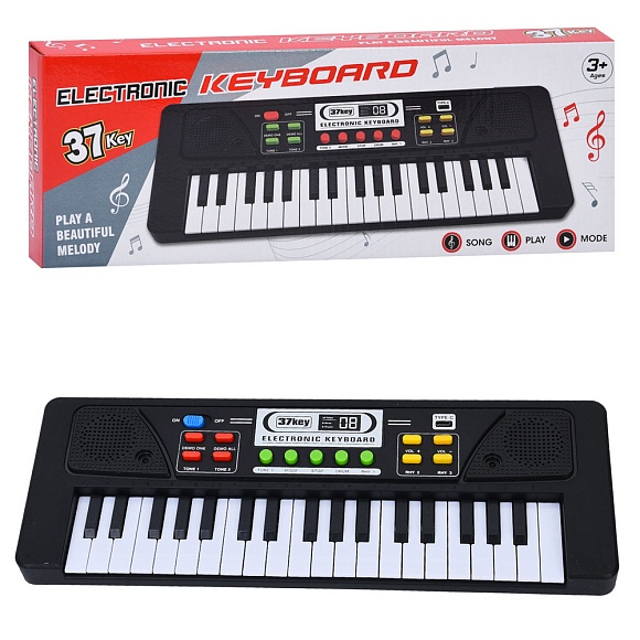 Опис Синтезатор r742 37 клавіш, 35,5-12,5-4см, музика, регулятор гучності,3 тони,демо, бат. кор.